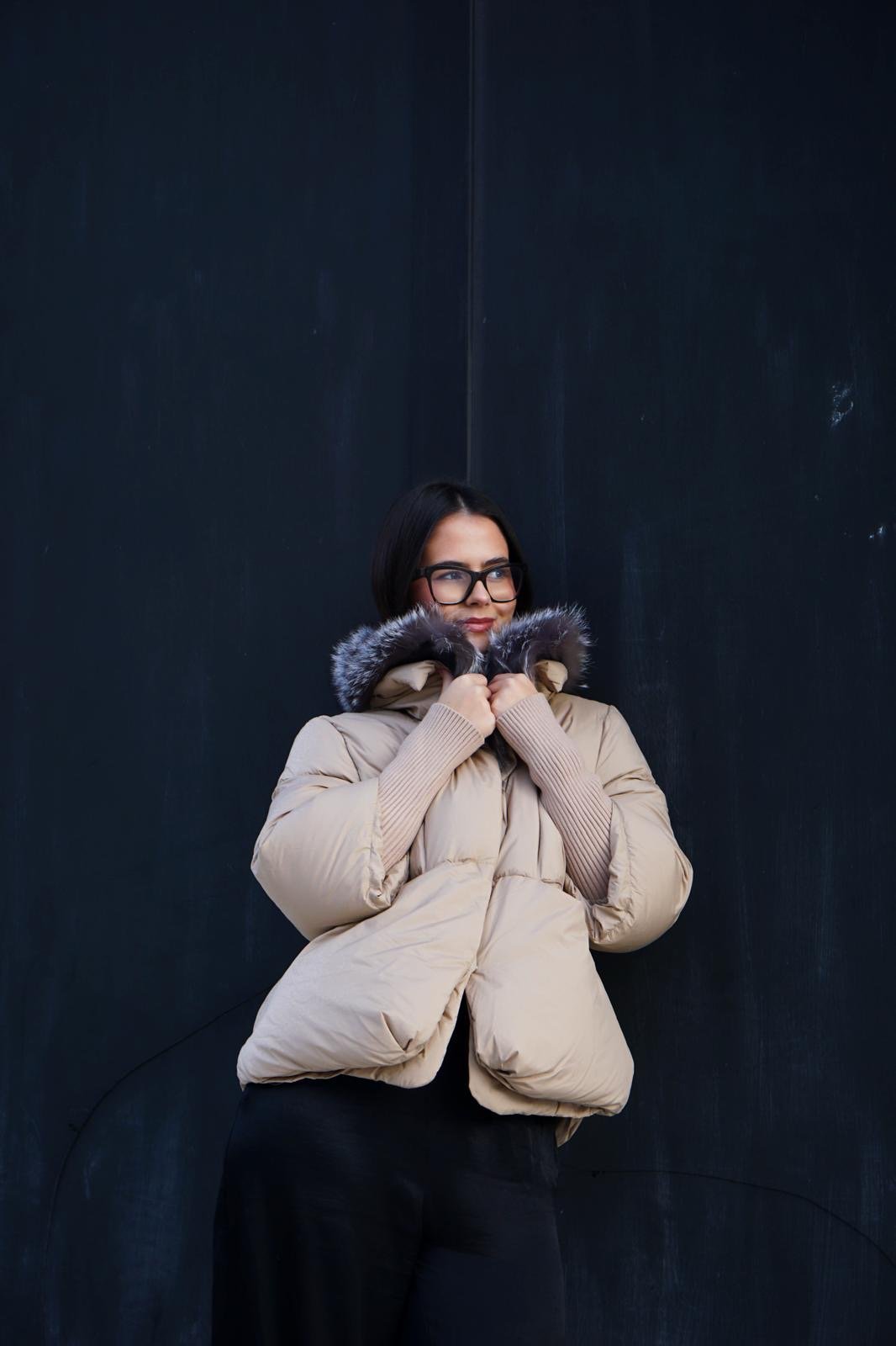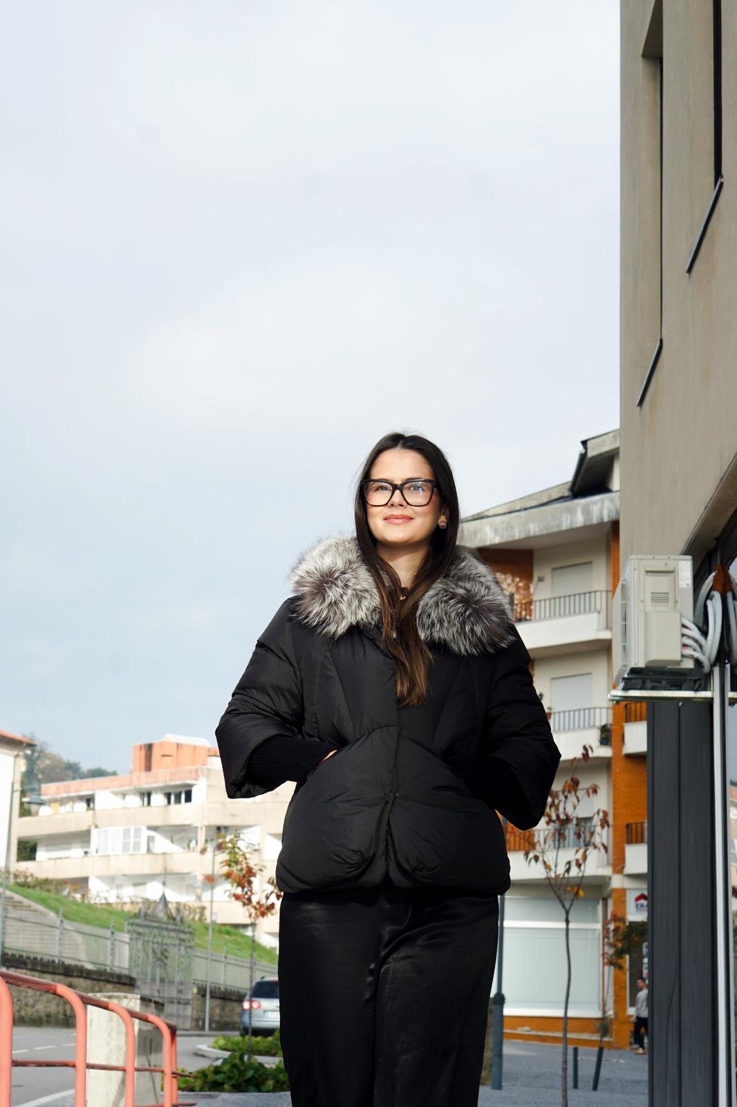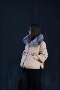 Kispo acolchoado com gola em pelo sintético, ideal para enfrentar o frio com conforto e um visual moderno.
