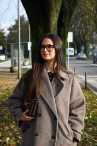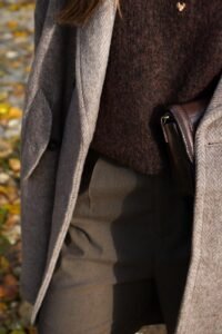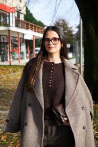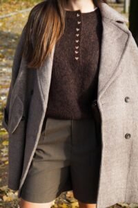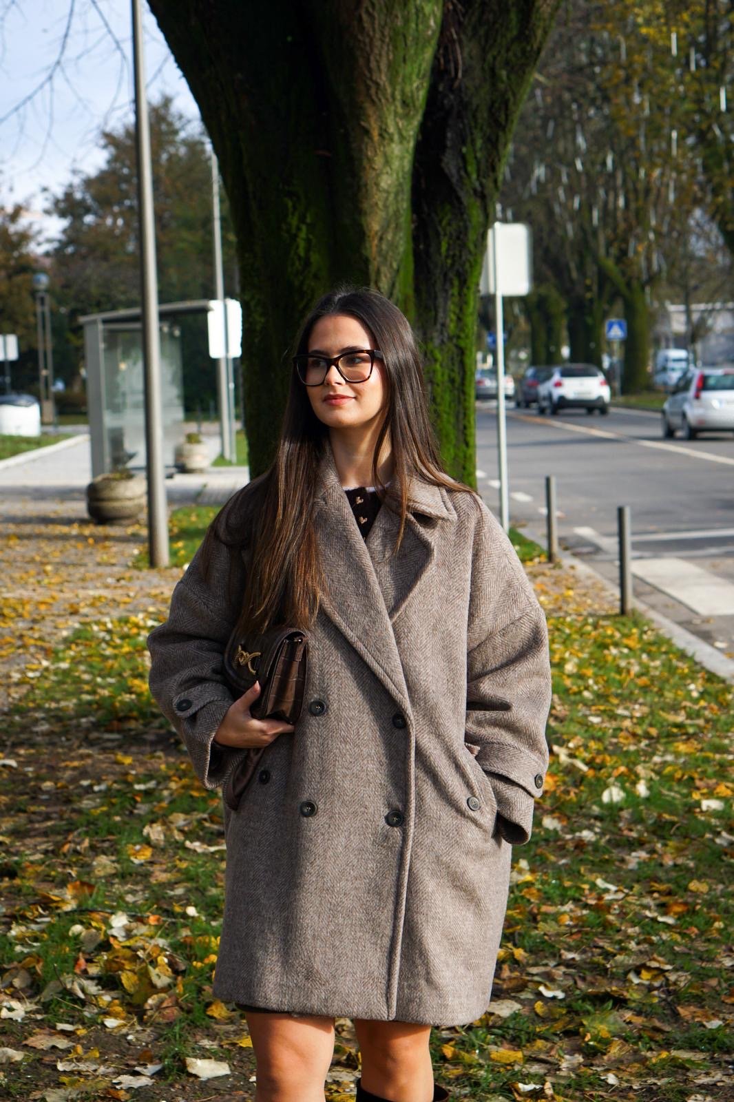 Casaco clássico e estruturado, de corte intemporal, estilo oversize, perfeito para elevar qualquer look de outono-inverno.