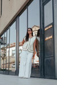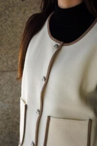 Graças ao seu design intemporal, o Milano Classic permite inúmeras combinações: use-o com camisas brancas para um look profissional, sobre blusas de malha para um visual casual chic ou até sobre vestidos fluídos para dar estrutura e modernidade à produção. O contraste do vivo em bege realça a silhueta, acrescentando sofisticação subtil à peça.