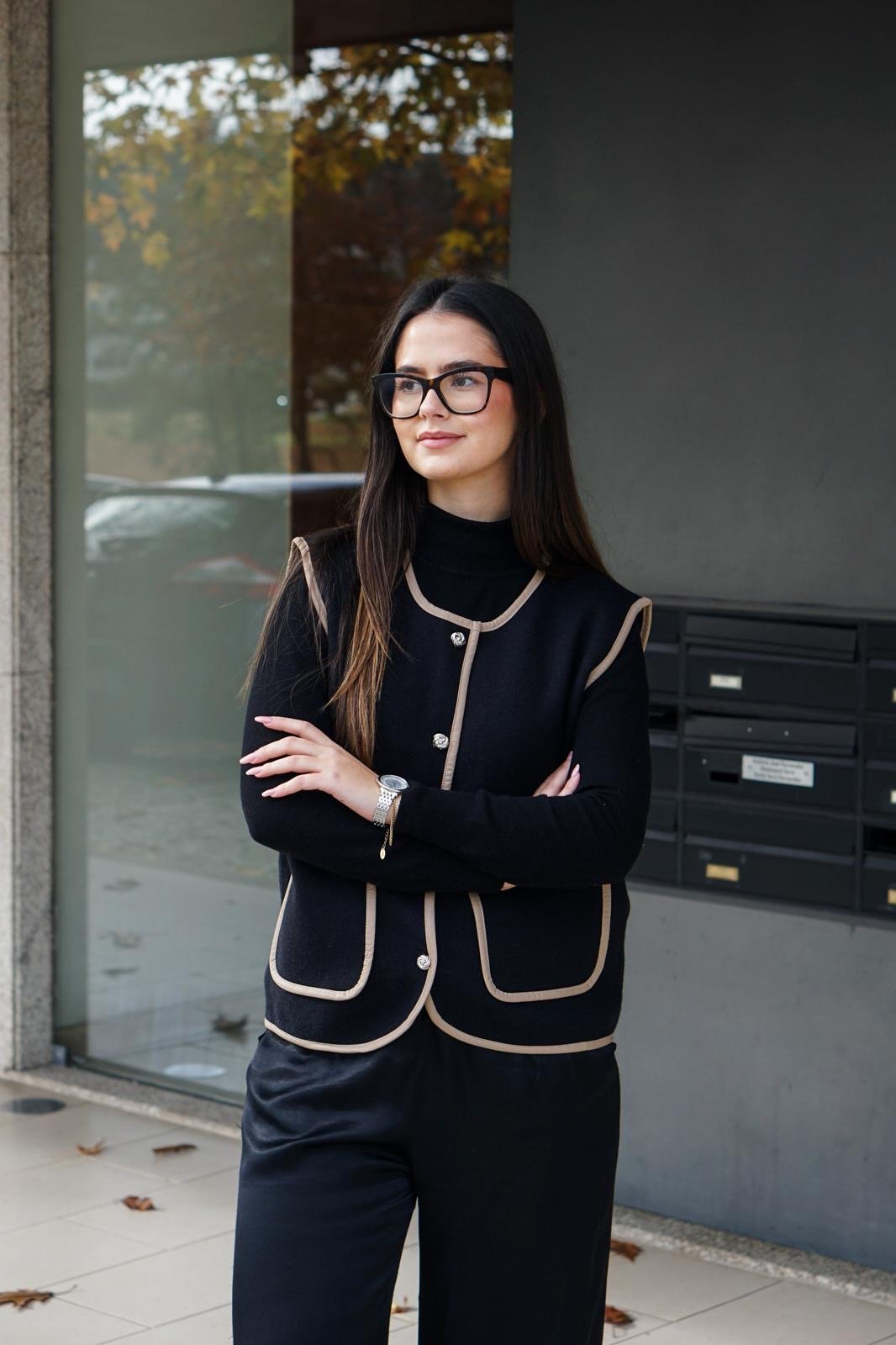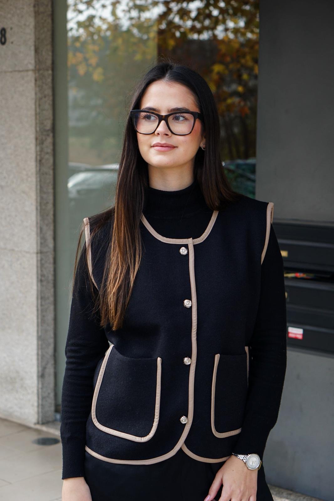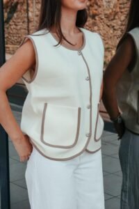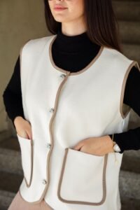 O Colete Milano Classic é a tradução de elegância discreta e estilo atemporal. Disponível em duas cores versáteis — preto e bege —, esta peça foi criada para mulheres que valorizam praticidade sem abrir mão do charme. O corte reto, os bolsos funcionais e os botões frontais com acabamento refinado elevam o design minimalista, tornando-o facilmente combinável com diferentes estilos.