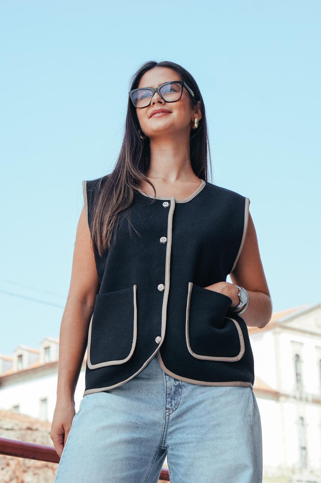 Com tamanho único, o colete ajusta-se a diferentes corpos com elegância, destacando-se como um must-have de qualquer guarda-roupa feminino. Seja para o escritório, um jantar especial ou um passeio descontraído, é a peça que confere versatilidade e estilo instantâneo.